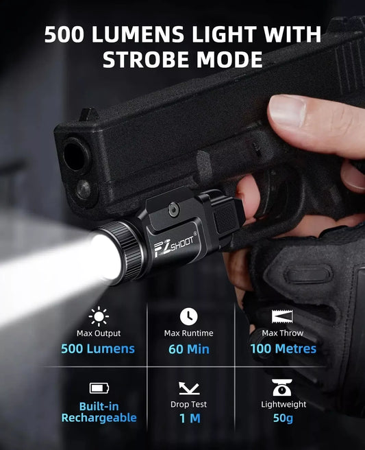 🇦🇺 EZShoot 500 Lumen Tactical / Rifle Pistol Flashlight - Super bright, USB chargable EBAY